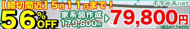 ■基本プラン、戸籍調査、本格専門調査(出身地域の歴史詳細調査、名字の詳細調査、アンケートなどの専門調査)がついて通常の50%OFF!