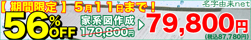 ■基本プラン、戸籍調査、本格専門調査(出身地域の歴史詳細調査、名字の詳細調査、アンケートなどの専門調査)がついて通常の50%OFF!