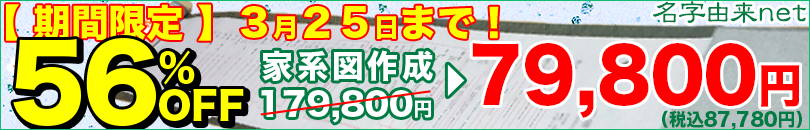 ■基本プラン、戸籍調査、本格専門調査(出身地域の歴史詳細調査、名字の詳細調査、アンケートなどの専門調査)がついて通常の50%OFF!